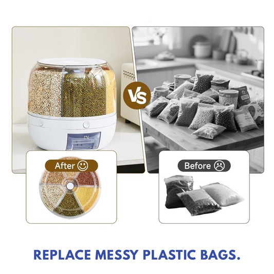 360° 6-Bin Rotating Cereal & Grain Dispenser – Airtight, One-Press, Counter-Ready