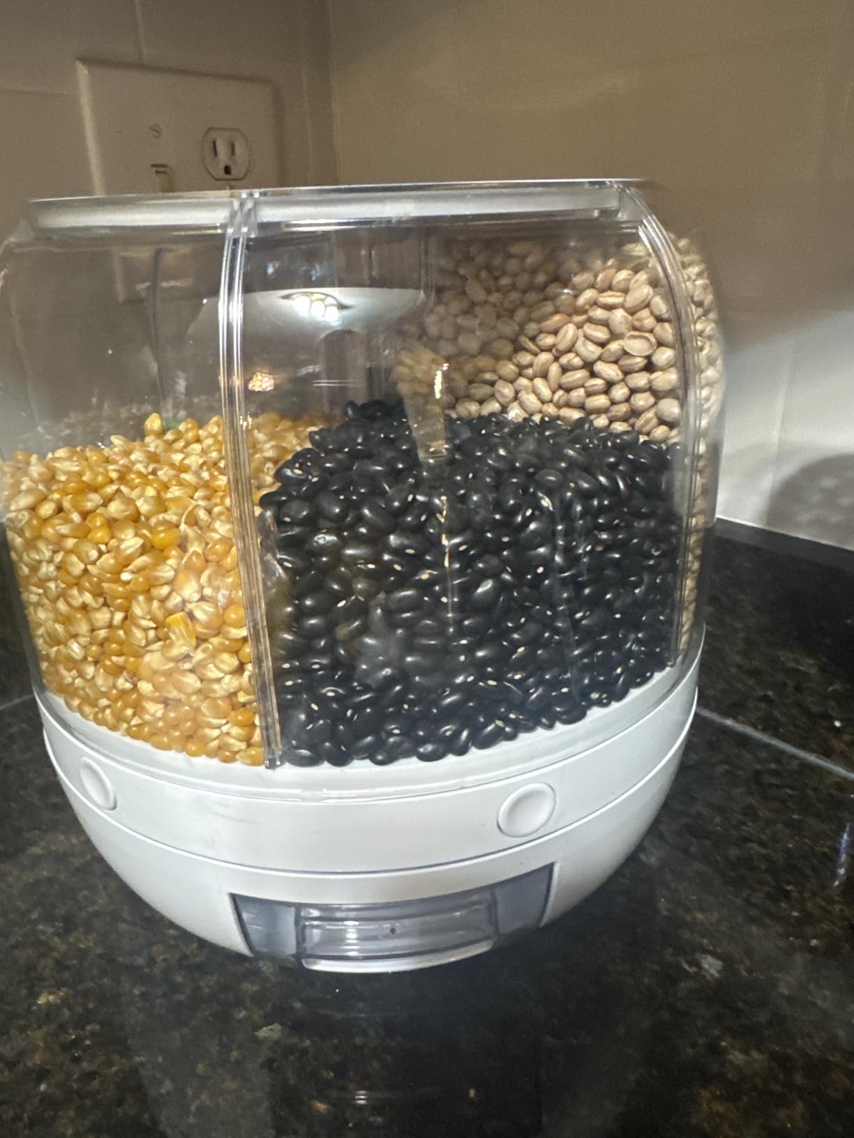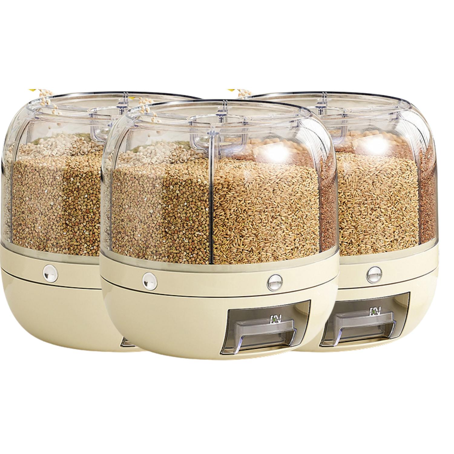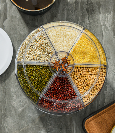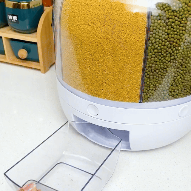 Spin to the right bin with a 360° rotate, then use one-hand operation to press-to-dispense straight into your pot or bowl—no scoops, no bag digging, no lifting the base. With clear bins and consistent portions, you move from ingredients to cooking in seconds, cutting steps and less cleanup afterward.